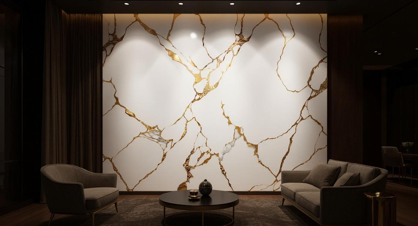 plaque mural marbre doré salon luxueux