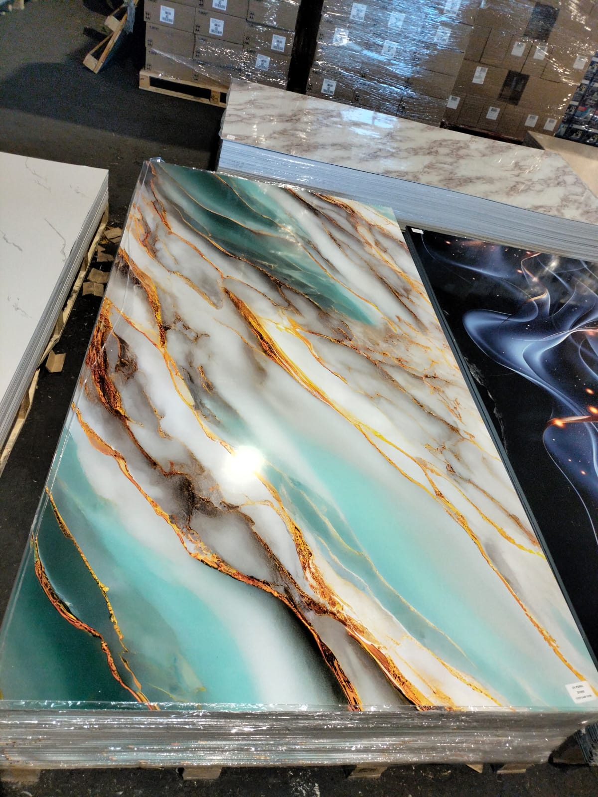 • Plaque PVC marbre bleu et or
