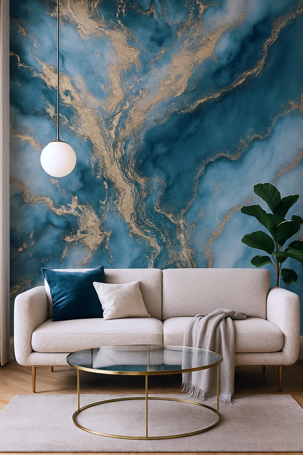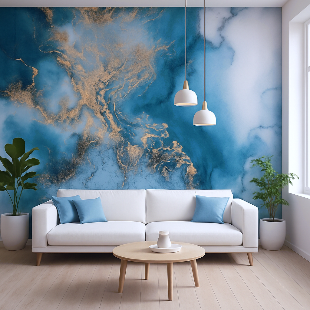Salon Moderne avec Mur Entièrement en PVC Marbre