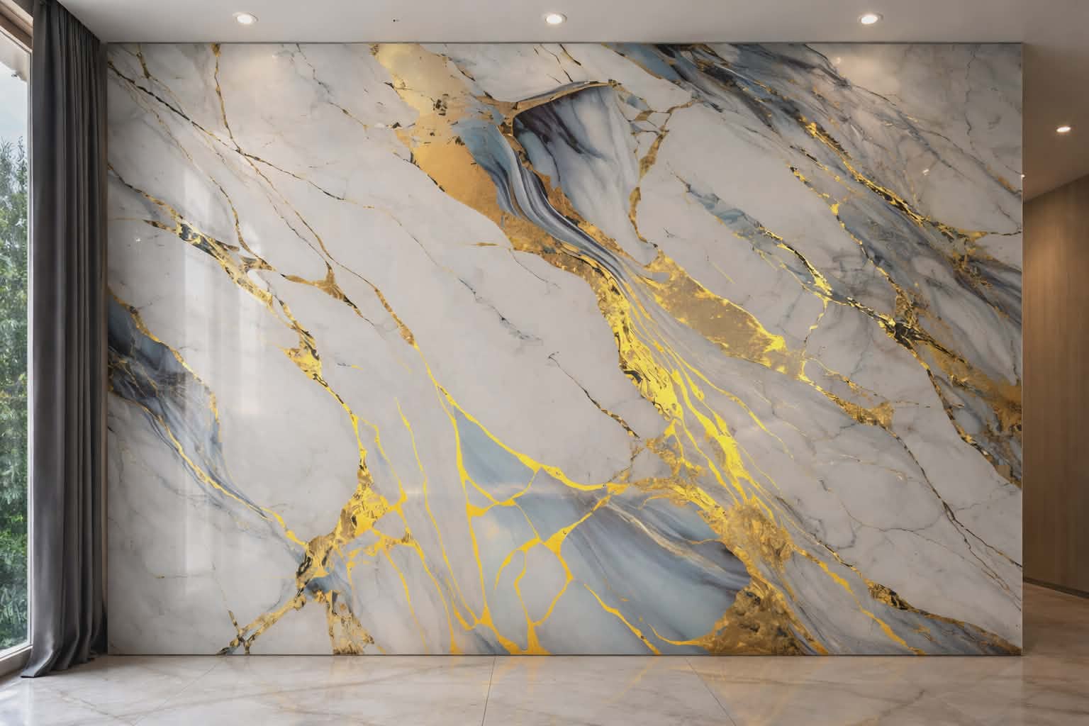 Panneau Mural PVC marbre bleu et doré 244x122 – Image 4